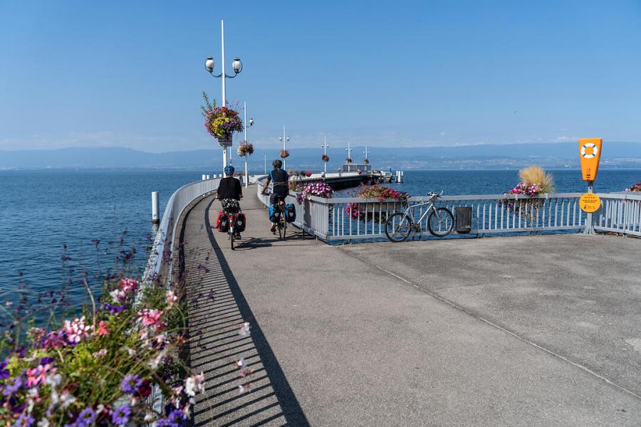 Ihre erste Radtour führt Sie von der Schweiz nach Frankreich entlang der Rhone. Unterwegs entdecken Sie das "Défilé de l’Écluse" und passieren die ersten Weinberge, die sich zwischen den majestätischen Alpen und Tälern erstrecken. Dieser Teil der Reise führt über etwas belebtere Straßen, doch der Rest der Woche wird deutlich ruhiger sein. Ihre erste Übernachtung erfolgt im malerischen Städtchen Seyssel, das idyllisch am Ufer des Flusses liegt.