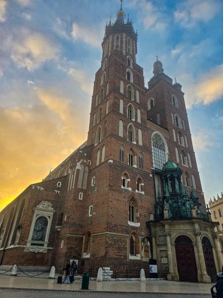 Nach dem flachen Radweg machten wir einen Halt am Czorsztyn-See (Stausee). Dann kam der schwierigste Anstieg des Tages. Oben angekommen, sahen wir einige glückliche Gänse und viele Kühe. Auf dem Weg nach unten bot sich mir dann die schönste Aussicht des Tages. Die orange-gelbe Bergkette mit dem See begrüßte uns. Wir machten eine weitere Pause, diesmal jedoch zum Mittagessen, da es zu regnen begann. Nach einem Mittagessen mit Pirogi ging es weiter zur Grenze, um in die Slowakei zu gelangen. Auf der einen Seite des Flusses liegt Polen, auf der anderen Seite die Slowakei. Es war so friedlich, durch die Schluchten des Pieninski-Nationalparks zu fahren. Wir sahen viele Menschen, die wanderten oder Rad fuhren. Wir kamen in Szczawnica in der Abenddämmerung an. Die Stadt ist voller Leben und größer als ich erwartet hatte. Ich zählte über 5 Brücken und bog ein paar Mal falsch ab, weil ich dachte, wir wären schon da, aber wir mussten noch einige Brücken überqueren. Unser Hotel Nawigator Kat. B liegt auf einem Hügel und ist auch schön. Nachdem wir uns etwas ausgeruht hatten, gingen wir in die Stadt, um Süßigkeiten und lokal hergestellten Käse zu kaufen, und kehrten dann zu unserem Hotel zurück.