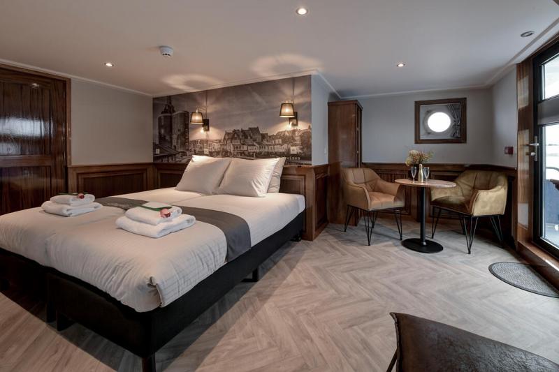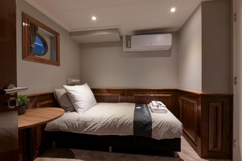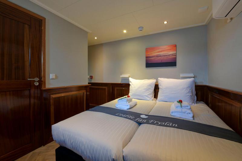 Das Schiff verfügt über 13 Zweibettkabinen, zwei Einzelkabinen und eine Junior-Suite auf dem Unterdeck und vier geräumige Suiten auf dem Oberdeck. Alle Kabinen verfügen über DU/WC, Föhn und Mini-Safe, einige 2-Bett-Kabinen sind mit einem zusätzlichen Pullmannbett/Klappbett) für eine 3. Person ausgestattet. Die Suiten auf dem Oberdeck verfügen über eine Glasschiebetür und einen kleinen Balkon.