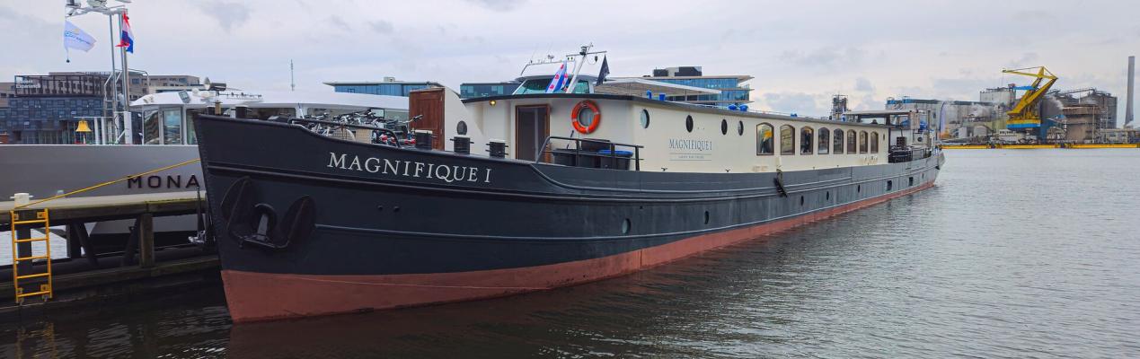 Die MS Magnifique I ist ein liebevoll ausgebautes und umgestaltetes ehemaliges Passagierschiff, das im Jahr 2024 neu zur Flotte stößt. Auf dem Oberdeck befindet sich ein geschmackvoll eingerichteter Salon mit einem Restaurantbereich, einer netten Bar und einem Loungebereich mit Sitzecken, Klimaanlage, Fernseher und großen Panoramafenstern. Wi-Fi ist verfügbar. Große Glastüren führen auf das schöne, teilweise überdachte Sonnendeck aus Teakholz mit Stühlen und Tischen zwischen dem Salon und dem Steuerhaus. Fahrräder können auf dem Vorderdeck abgestellt werden.