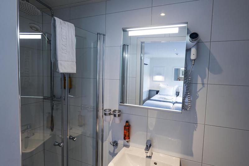 Alle 17 Kabinen verfügen über Badezimmer mit Dusche/WC, individuell regelbarer Klimaanlage, Flatscreen, einem kleinen Tresor und einem Föhn.