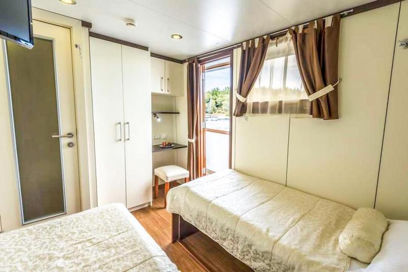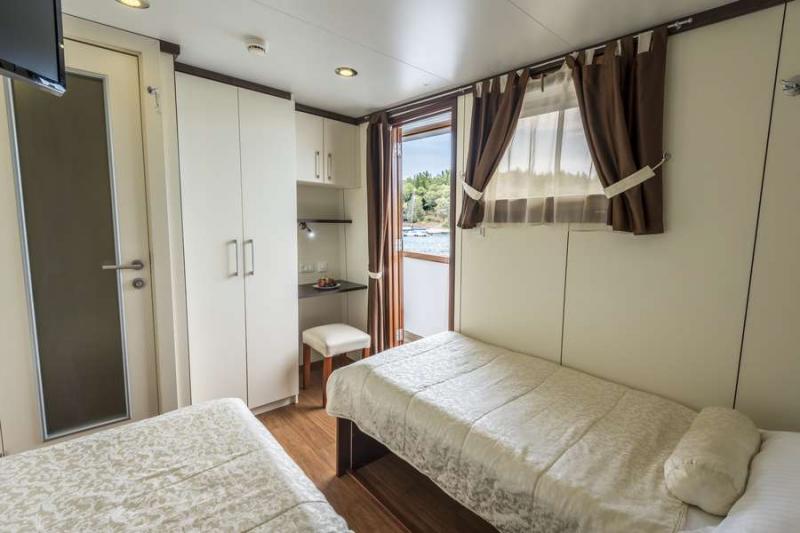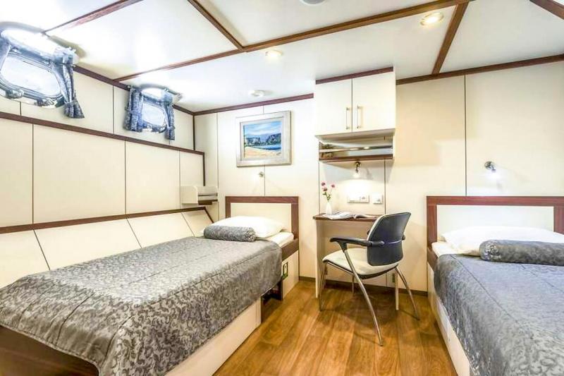 - Oberdeck: 1x Doppelkabine mit Einzelbetten