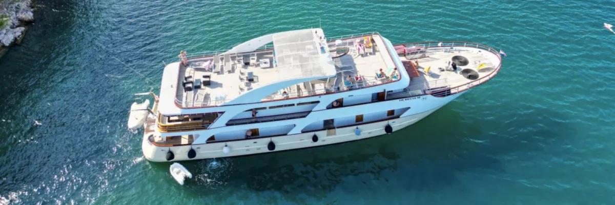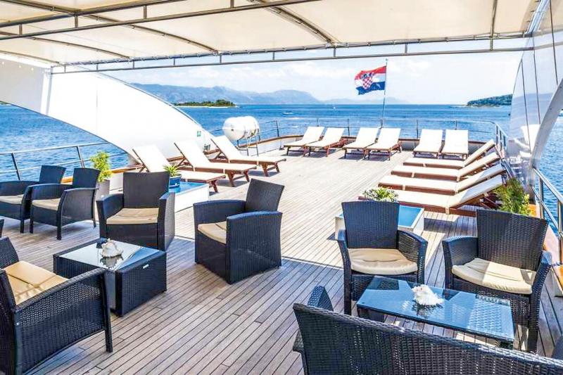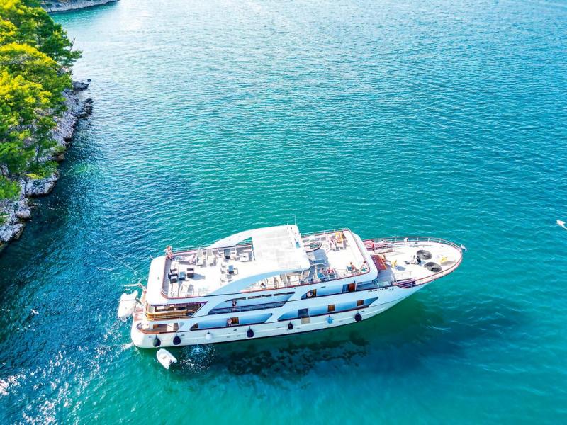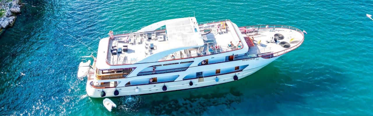Das charmante Küstenkreuzfahrtschiff im Stil einer Yacht ermöglicht Ihnen, die beeindruckende Adriaküste auf komfortable und stilvolle Weise zu entdecken. Die klimatisierten, modern ausgestatteten Kabinen bieten mit eigenem Bad und hochwertigen Annehmlichkeiten den idealen Rückzugsort für entspannte Stunden an Bord. Auf der Olmissum erwartet Sie ein Panorama-Restaurant, das außerhalb der Mahlzeiten auch als gemütlicher Aufenthaltsraum bzw. Panorama-Salon genutzt werden kann. Am Heck lädt eine Außenlounge zum Entspannen ein. Wer lieber vorne am Bug die Aussicht genießen möchte, kann es sich dort gemütlich machen und die vorbeiziehende Küstenlandschaft auf sich wirken lassen.