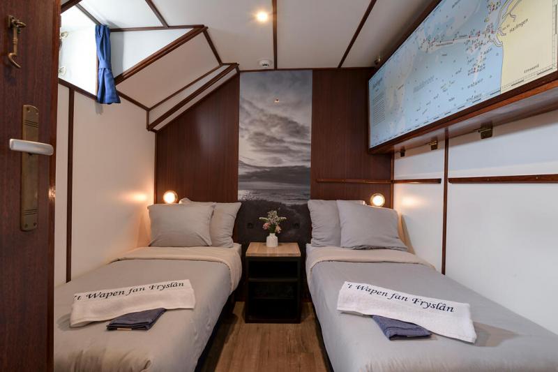 Mit seinen 55 Metern ist die WAPEN FAN FRYSLÂN der größte Zweimastschoner der Niederlande. Als Frachtschiff wurde das Schiff 1965 erstmals zu Wasser gelassen. Mit allerlei Ladung fuhr das Schiff durch die Niederlande, Deutschland und Belgien. 2003 wurde mit der kompletten Metamorphose zum segelnden Passagierschiff begonnen.