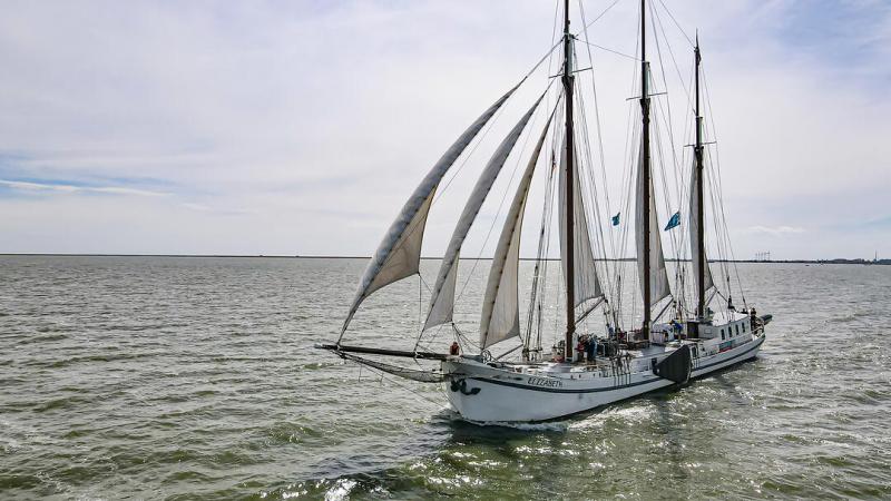 Der imposante Klipper aus dem Jahr 1913 verfügt über eine gehobene Inneneinrichtung. Bei dem behutsamen Umbau zum modernen Passagiersegler wurde sehr darauf geachtet, die Originalität des typisch niederländischen Plattbodenschiffes zu erhalten. Geräumige Kabinen mit eigener Dusche und Toilette, ein großer Salon mit Bar und einer gemütlichen Sitzecke garantieren einen komfortablen Aufenthalt.