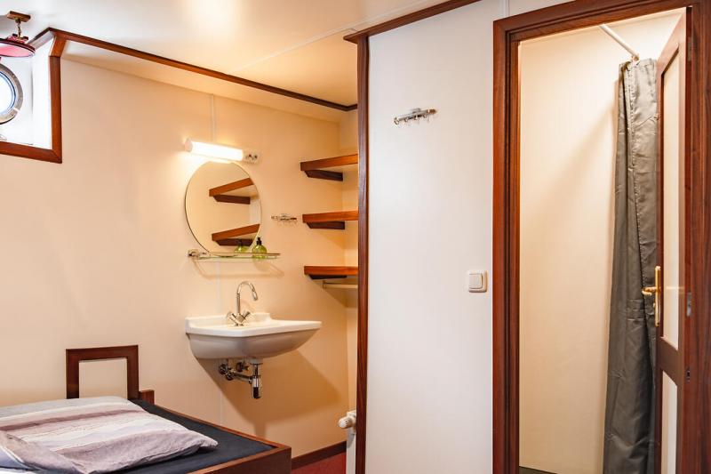 Die Antigua verfügt über 16 komfortable Gästekabinen, jede mit eigenem Bad mit Dusche und WC. Alle Kabinen befinden sich unter Deck, 8 Kabinen haben 2 getrennte Einzelbetten und 8 Kabinen haben ein Etagenbett. Alle Kabinen sind mit Zentralheizung, Regalen und einem Bullauge ausgestattet, das aus Sicherheitsgründen verschlossen ist. Die Kabinen sind praktisch, bieten genügend Platz für Ihr Gepäck und strahlen eine maritime Atmosphäre aus.